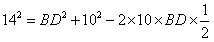 在四边形ABCD中,已知AD⊥CD,AD=10,AB=14,∠BDA=60°,∠BCD=135°,求BC的长。