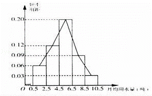 ½ñÄêÎ÷ÄÏÒ»µØÇøÔâÓöÑÏÖØ¸Éºµ£¬Ä³Ïç¼Æ»®ÏòÉϼ¶ÉêÇëÖ§Ô®£¬ÎªÉϱ¨ÐèË®Á¿£¬Ï糤ÊÂÏȳéÑùµ÷²éÁË100 »§´åÃñµÄÔ¾ùÓÃË®Á¿£¬µÃµ½Õâ100»§´åÃñÔ¾ùÓÃË®Á¿µÄƵÂÊ·Ö²¼±íÈç±í£º£¨Ô¾ùÓÃË®Á¿µÄµ¥Î»£º¶Ö£©