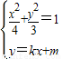 ,消去y并整理得(3+4k2)x2+8kmx+4m2-12=0,由直线y=kx+m与椭圆有两个交点,知m2<4k2+3.又