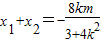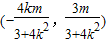 消去y并整理得(3+4k2)x2+8kmx+4m2-12=0…(6分)