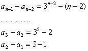 已知数列{an}中,a1=1,且an+1-an=3n-n,求数列{an}的通项公式。