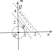 解答 解:正实数m,n满足2<m+2n<4,如图所示,![]()