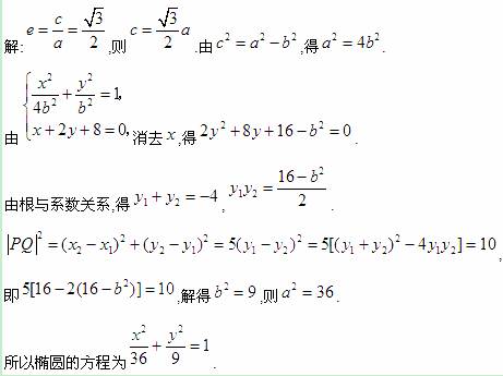 (12分)椭圆的离心率为,椭圆与直线相交于点,且,求椭圆的方程.