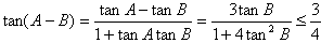 (2)由(1)得tanA=4tanB,故A、B都是锐角,于是tanB>0