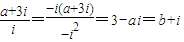 【答案】分析:把给出的等式的左边利用复数的除法运算化简,然后利用复数相等的条件求出a,b的值,则答案可求.