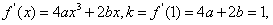 已知f(x)=ax4+bx2+c的图象经过点(0,1),且在x=1处的切线方程是y=x-2,