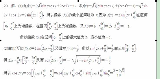 (2)若f(x0)=,x0∈,求cos 2x0的值.