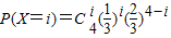 4人中选择甲公园的人数X可看作4次独立重复试验中事件C发生的次数,
