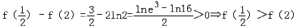 当x∈(1,2]时,f'(x)>0,于是f(x)在(1,2]上单调递增.