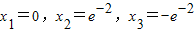 当x<0时,f(x)=-2-lnx=0,得lnx=-2,∴x=e-2.