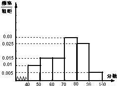 故第四组的频率:f4=1-(0.025+0.01×52+0.01+0.005)×10=0.3