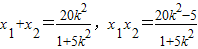 将直线l的方程代入到椭圆C的方程中,消去y并整理得(1+5k2)x2-20k2x+20k2-5=0.…(8分)∴