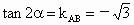 设直线 l的倾斜解为α,由题意知:直线 AB的倾斜角为2α.∵ 且 ∴ 2α=120°,即α=60°.∴ ∴直线 l的斜率为 |