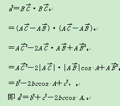 平方的和减去这两边与它们夹角的余弦之积的两倍.或:在△ABC中,a,b,c为A,B,C的对边,有
