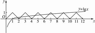 ∴f(x)是以2为周期的周期函数,图象如图,与y=lgx有9个交点.?
