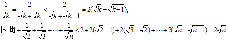 (2)假设n=k(k≥1)时,不等式成立,即1+