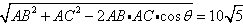 | 解:(1)如图,AB=40 由于 所以cosθ= 由余弦定理得BC= 所以船的行驶速度为 |