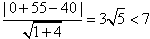 | (2)如图所示,以A为原点建立平面直角坐标系,设点B、C的坐标分别是B(x1,y2),C(x1,y2),BC与x轴的交点为D 由题设有x1=y1= x2=ACcos y2=ACsin 所以过点B、C的直线l的斜率k= 直线l的方程为y=2x-40 又点E(0,-55)到直线l的距离d= 所以船会进入警戒水域。 |