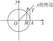 解答 解:如右图,OP为角x的终边,图中MP、$\widehat{AP}$、分别表示sinx、x、由S△OAP<S扇形OAP,![]()