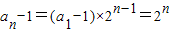∴an=2an-2an-1+1,从而an=2an-1-1即an-1=2(an-1-1)