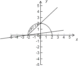 圆是上半圆,直线过(-2,0),(0,2)时,