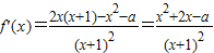 (2)由f(x)在x=1取得极值得到f′(1)=0,求出a的值,根据函数的定义域为x≠-1,分区间利用x的范围讨论导函数的正负,得到函数的单调区间.