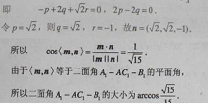 作B1H⊥A1C1,H为垂足,因为底面A1B1C1⊥面AA1CC1,故B1H⊥面AA1C1C.又作HK⊥AC1,K为垂足,连接B1K,由三垂线定理,得B1K⊥AC1,因此∠B1KH为二面角A1-AC1-B1的平面角.