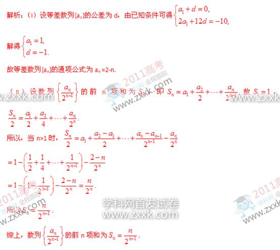 (本小题满分12分)已知等差数列{an}满足a2=0,a6+a8= -10(I)求数列{an}的通项公式;(II)求数列的前n项和.