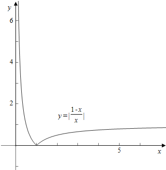 分析 (1)化简f(x)=|$\frac{1-x}{x}$|=$\left\{\begin{array}{l}{\frac{1-x}{x},0<x≤1}\\{\frac{x-1}{x},x>1}\end{array}\right.$,从而作出图象;