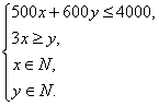 某钢铁厂要把长度为4000mm的钢管截成500mm和600mm两种。按照生产的要求,600mm钢管的数量不能超过500mm钢管的3倍。假设截得的500mm钢管x根,截得的600mm钢管y根,则满足上述所有条件的线性约束条件为( )。