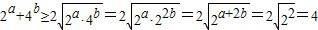 已知点P(a,b)在直线x+2y=2上运动,则2a+4b一定有( )A.最小值4