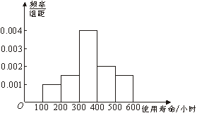 | 寿命/小时 | 100~200 | 200~300 | 300~400 | 400~500 | 500~600 |
