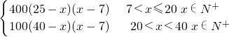 当20<x<40,因为x∈N*,所以当x=23或24时,ymax=27200(元);