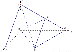 (2)由(1)中的坐标系,及E为侧棱PC上一点,