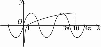 由图中看出两函数图象有三个交点(xi,yi),其中xi∈(1,10)(i=1,2,3)是方程sinx=lgx的解,此方程再无别的解.