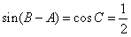 ,sin(B-A)=cosC。