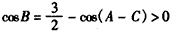 在△ABC中,a,b,c分别是角A,B,C所对的边,且b2=ac,向量m=(cos(A-C,1)和n=(1,cosB)满足m·n=