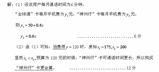 (1)请将使用“全球通”卡每月手机费