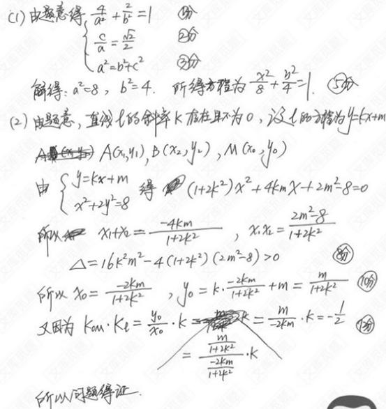 (II)直线l不经过原点O,且不平行于坐标轴,l与C有两个交点A,B,线段AB中点为M,证明:直线OM的斜率与直线l的斜率乘积为定值.