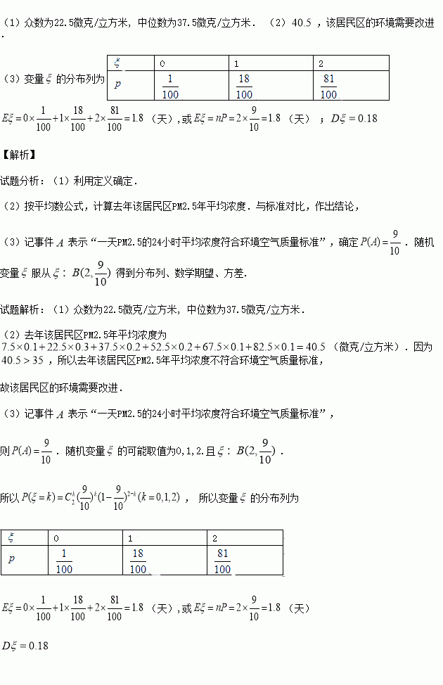 ¸ù¾Ý¹ú¼Ò¡¶»·¾³¿ÕÆøÖÊÁ¿±ê×¼¡·¹æ¶¨:¾ÓÃñÇøÖеÄPM2.5£¨PM2.5ÊÇÖ¸´óÆøÖÐÖ±¾¶Ð¡ÓÚ»òµÈÓÚ2.5΢Ã׵ĿÅÁ£ÎҲ³Æ¿ÉÈë·Î¿ÅÁ£ÎÄêÆ½¾ùŨ¶È²»µÃ³¬¹ý35΢¿Ë/Á¢·½Ã×£¬PM2.5µÄ24Сʱƽ¾ùŨ¶È²»µÃ³¬¹ý75΢¿Ë/Á¢·½Ã×. ij³ÇÊл·±£²¿ÃÅËæ»ú³éÈ¡ÁËÒ»¾ÓÃñÇøÈ¥Äê40ÌìµÄPM2.5µÄ24Сʱƽ¾ùŨ¶ÈµÄ¼à²âÊý¾Ý£¬Êý¾Ýͳ¼ÆÈçÏ£º
