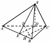 由俯视图、侧视图知,点S在平面ABC上的正投影为DC的中点O,