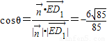 设直线ED1与面EB1C所成角为α,则cosθ=cos(α+90°)=-sinα.