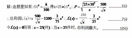 某厂生产产品x件的总成本c(x)=(万元),已知产品单价P(万元) 与产品件数x满足:,生产1件这样的产品单价为16万元.