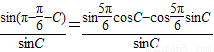 【答案】分析:(1)先利用正弦定理把题设条件中的边转化成角的正弦,进而利用两角和的公式化简整理求的cotC的值,进而求得C.