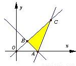 在坐标系中画出可行域△ABC,A(2,0),B(1,1),C(3,3),