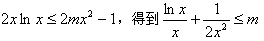 (Ⅱ)若2xlnx≤2mx2-1在[1,e]恒成立,求m的取值范围。