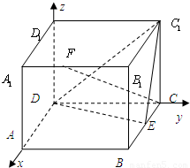 【答案】分析:(1)以D点为坐标原点,建立如图所示空间直角坐标系,可得D、E、C1、C各点的坐标,从而得到
