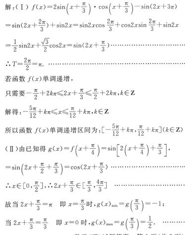 (Ⅱ)若将 的图象向左平移 个单位,得到函数g(x)的图象,求函数g(x)在区间 上的最大值和最小值,
