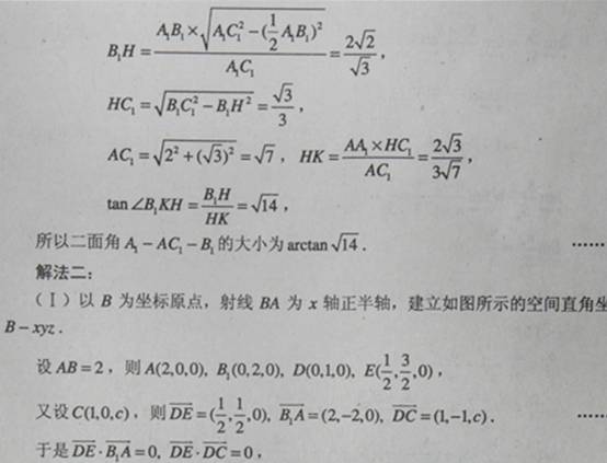 作B1H⊥A1C1,H为垂足,因为底面A1B1C1⊥面AA1CC1,故B1H⊥面AA1C1C.又作HK⊥AC1,K为垂足,连接B1K,由三垂线定理,得B1K⊥AC1,因此∠B1KH为二面角A1-AC1-B1的平面角.