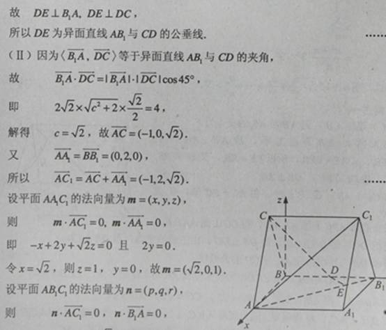 (II)因为DG∥AB1,故∠CDG为异面直线AB1与CD的夹角,∠CDG=45°